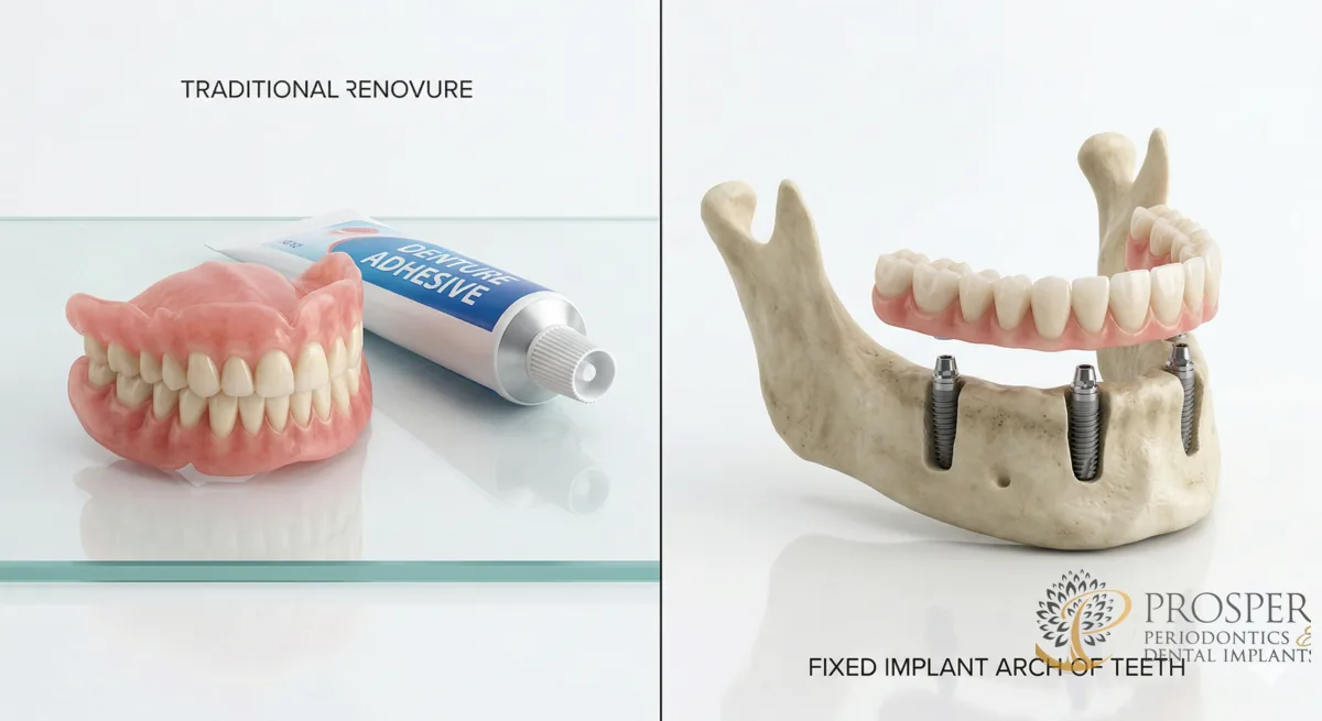 Ready to ditch the denture adhesive? Schedule a consultation with Dr. Parachuru at Prosper Periodontics. Call (972) 787-1122.
